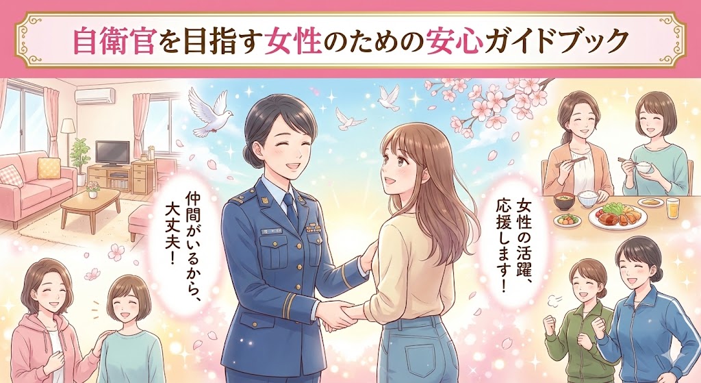 【女性向け】自衛隊入隊ガイド 自衛官を目指す女性のための安心ガイドブック 生理、体力、安全面まで。あなたの不安を解消します。 1. 生理用品や生理時の訓練について 「訓練中はどうしているの?」「トイレに行けない時間はどうするの?」という不安は、女性入隊者にとって最も身近で切実な問題です。自衛隊では女性隊員の数が増えており、現在では生理への理解と対策はかなり進んでいます。 日常生活(教育隊・駐屯地内) 新隊員教育の期間中であっても、通常の生活(駐屯地内での座学や基本教練など)であれば、休憩時間にトイレへ行く ...