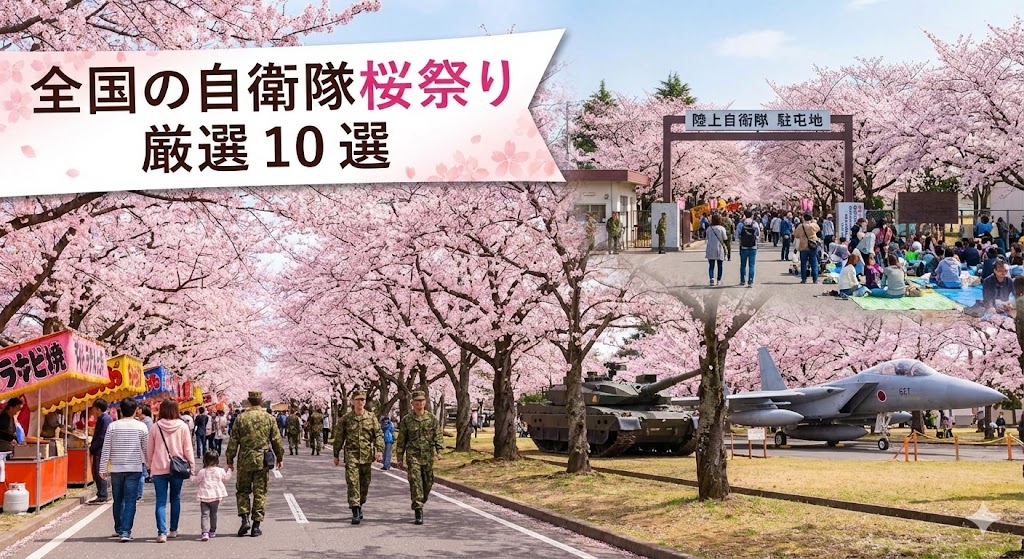 全国の自衛隊 桜祭り おすすめ10選 自衛隊の駐屯地や基地で開催される桜祭りは、普段は立ち入ることができない施設内で、満開の桜と大迫力の装備品を同時に楽しむことができる大変魅力的なイベントです。ご家族連れから写真愛好家の方まで、幅広い層にお楽しみいただけます。 2026年の春に向けて、全国の数ある桜祭りの中から特におすすめの10箇所を厳選いたしました。 おすすめ10選 一覧表 ※スマートフォンでご覧の方は、表を横にスワイプしてご確認ください。 No. 名称 都道府県 開催時期(目安) 最寄り駅 1 航空自 ...