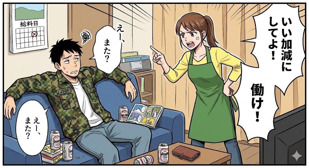 「3大悪癖」自衛官と決別するための脱出マニュアル 「国防男子」というブランドに騙されるな 〜酒・女・ギャンブルに溺れる男を、これ以上愛してはいけない〜 最初に断言します。自衛官の9割以上は、規律を守り、家族を愛する素晴らしい人々です。 しかし、残りの数%。制服の権威を笠に着て、欲望のままに生きる「制服を着ただけのクズ」が確実に存在します。 あなたは薄々気づいているはずです。「彼は変わらない」と。 2025年12月、自衛官の給料は上がりました。ボーナスも増えました。 本来なら家族が喜ぶべきこのニュースも、あ ...